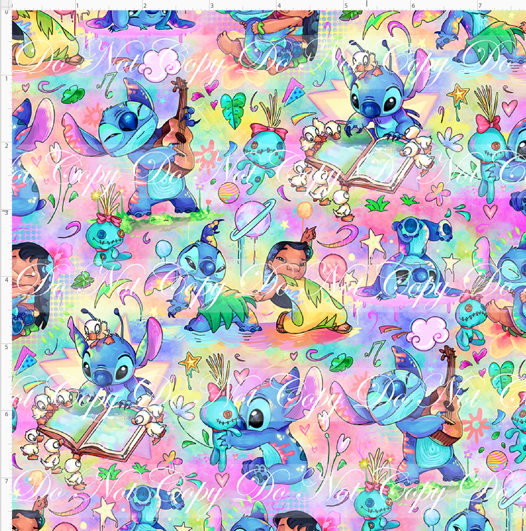 Kid/child panels measure 19" x 34". The image area typically ranges from 7" x 7" to 8" x 8", though some smaller design elements may extend beyond these dimensions. Please refer to the ruler shown on the design to ensure it fits your project needs.