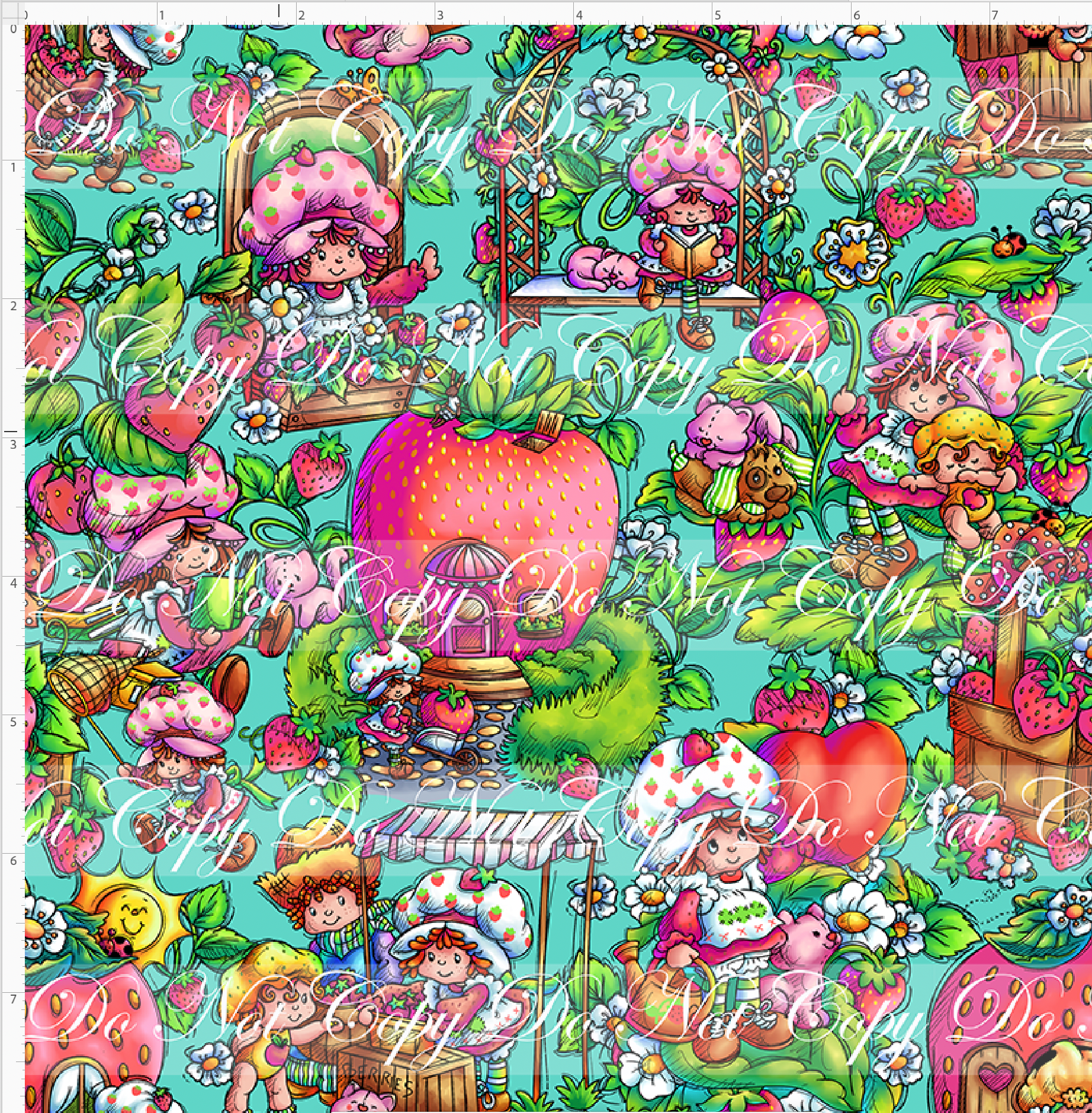 Down in the Strawberry Patch - Main Design - SMALL SCALE - Teal