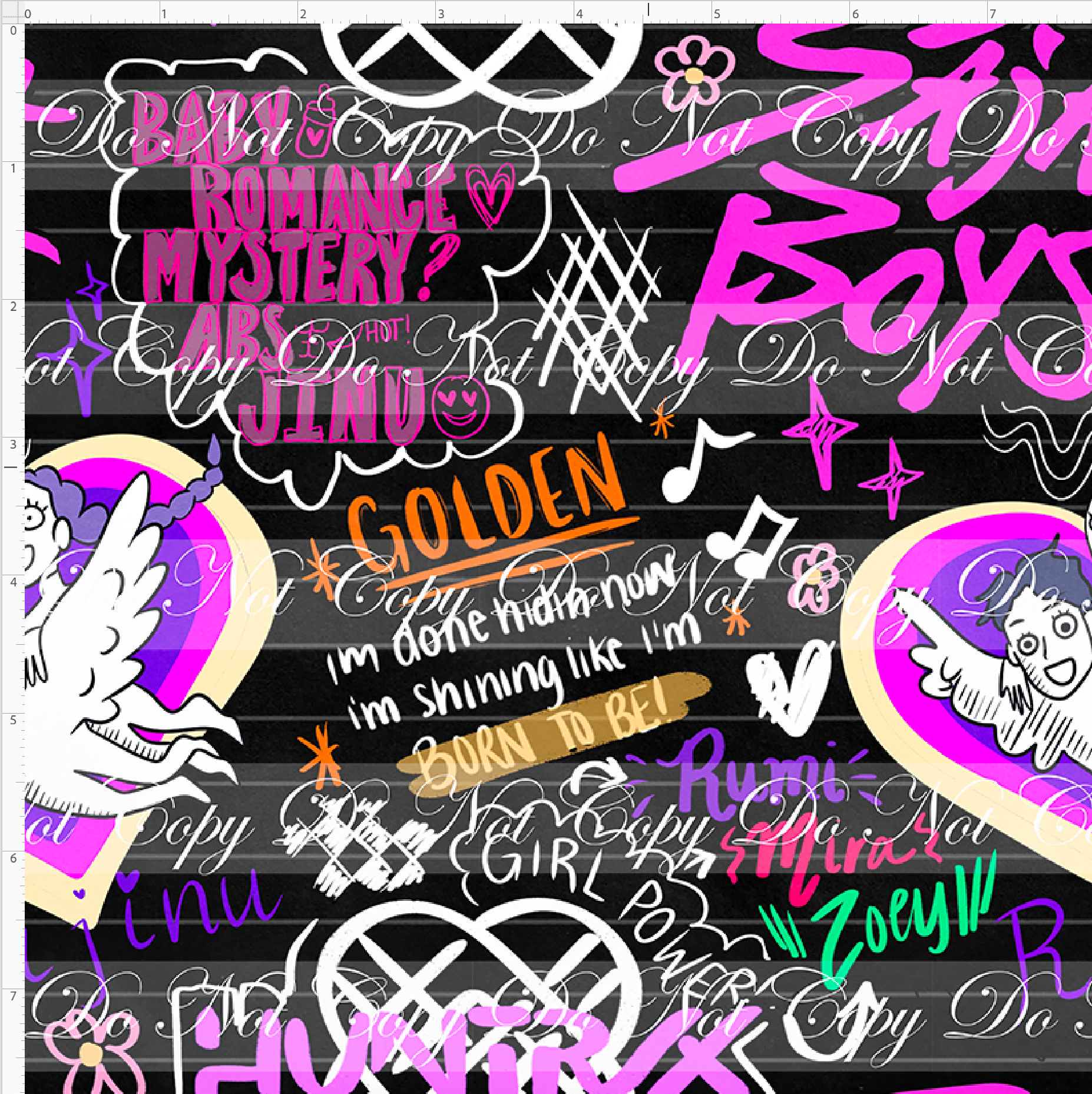 Kid/child panels measure 19" x 34". The image area typically ranges from 7" x 7" to 8" x 8", though some smaller design elements may extend beyond these dimensions. Please refer to the ruler shown on the design to ensure it fits your project needs.