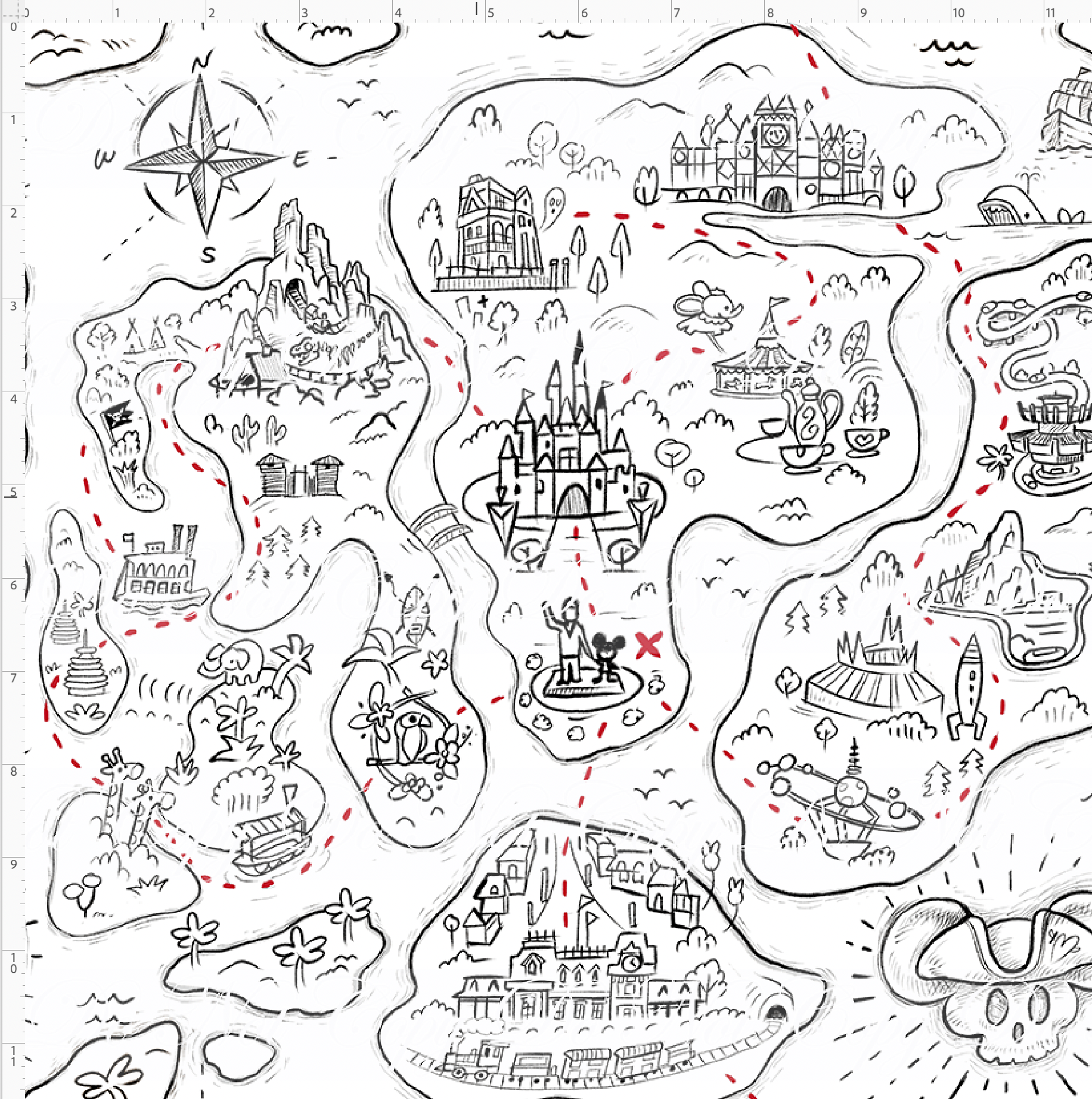 Kawaii Pirates - Pirate Map - black and red - REGULAR SCALE