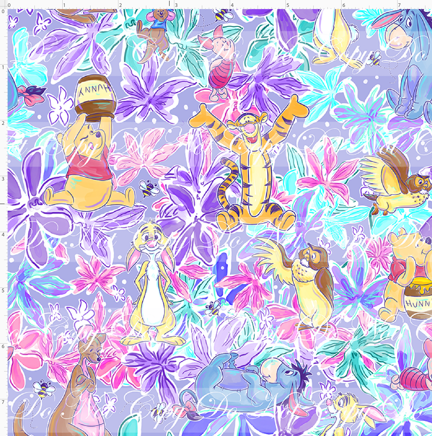 Kid/child panels measure 19" x 34". The image area typically ranges from 7" x 7" to 8" x 8", though some smaller design elements may extend beyond these dimensions. Please refer to the ruler shown on the design to ensure it fits your project needs.