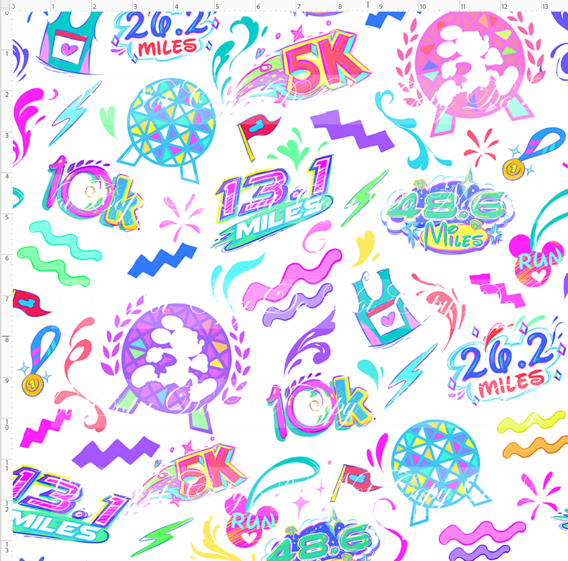 Kid/child panels measure 19" x 34". The image area typically ranges from 7" x 7" to 8" x 8", though some smaller design elements may extend beyond these dimensions. Please refer to the ruler shown on the design to ensure it fits your project needs.