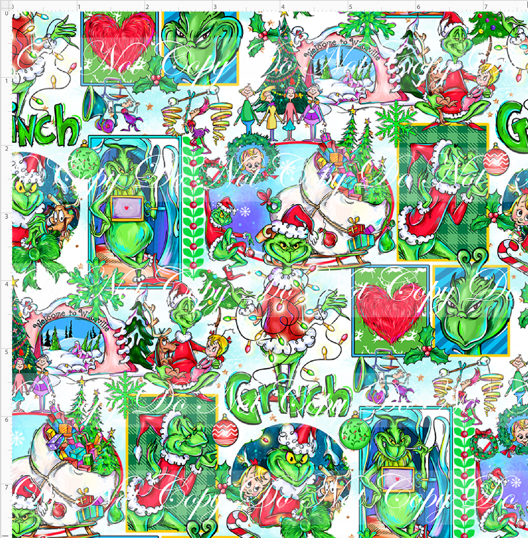 Kid/child panels measure 19" x 34". The image area typically ranges from 7" x 7" to 8" x 8", though some smaller design elements may extend beyond these dimensions. Please refer to the ruler shown on the design to ensure it fits your project needs.