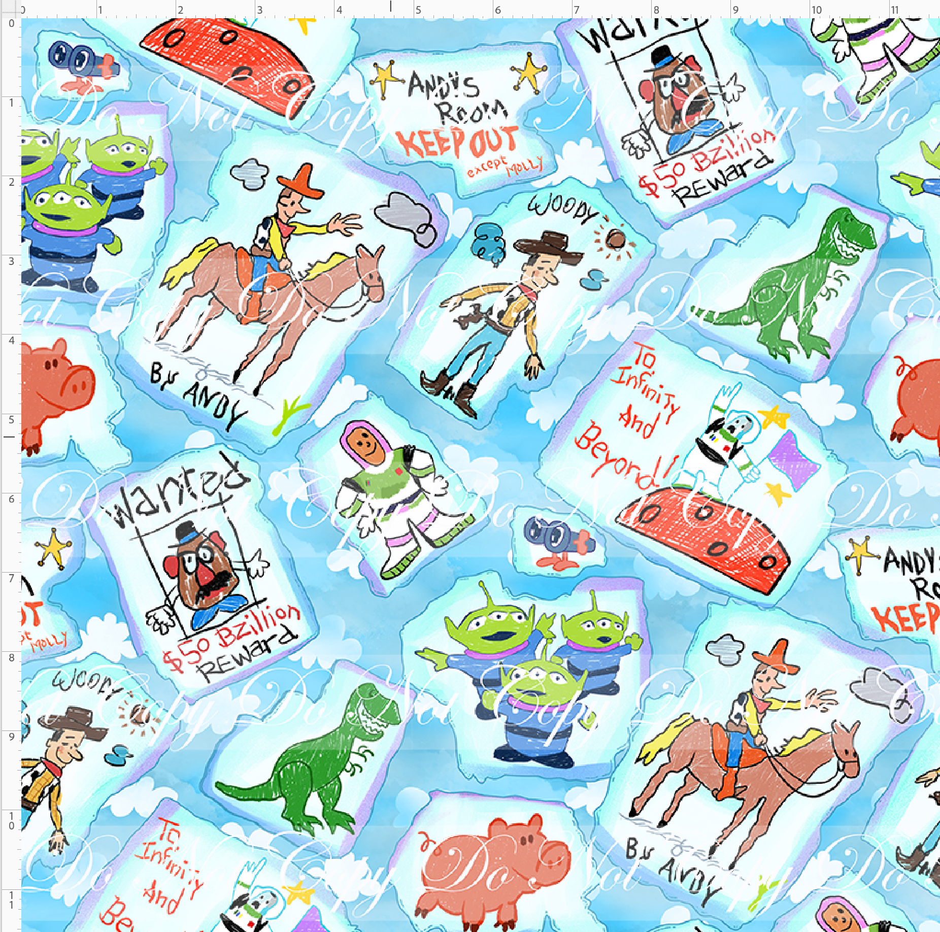 Kid/child panels measure 19" x 34". The image area typically ranges from 7" x 7" to 8" x 8", though some smaller design elements may extend beyond these dimensions. Please refer to the ruler shown on the design to ensure it fits your project needs.