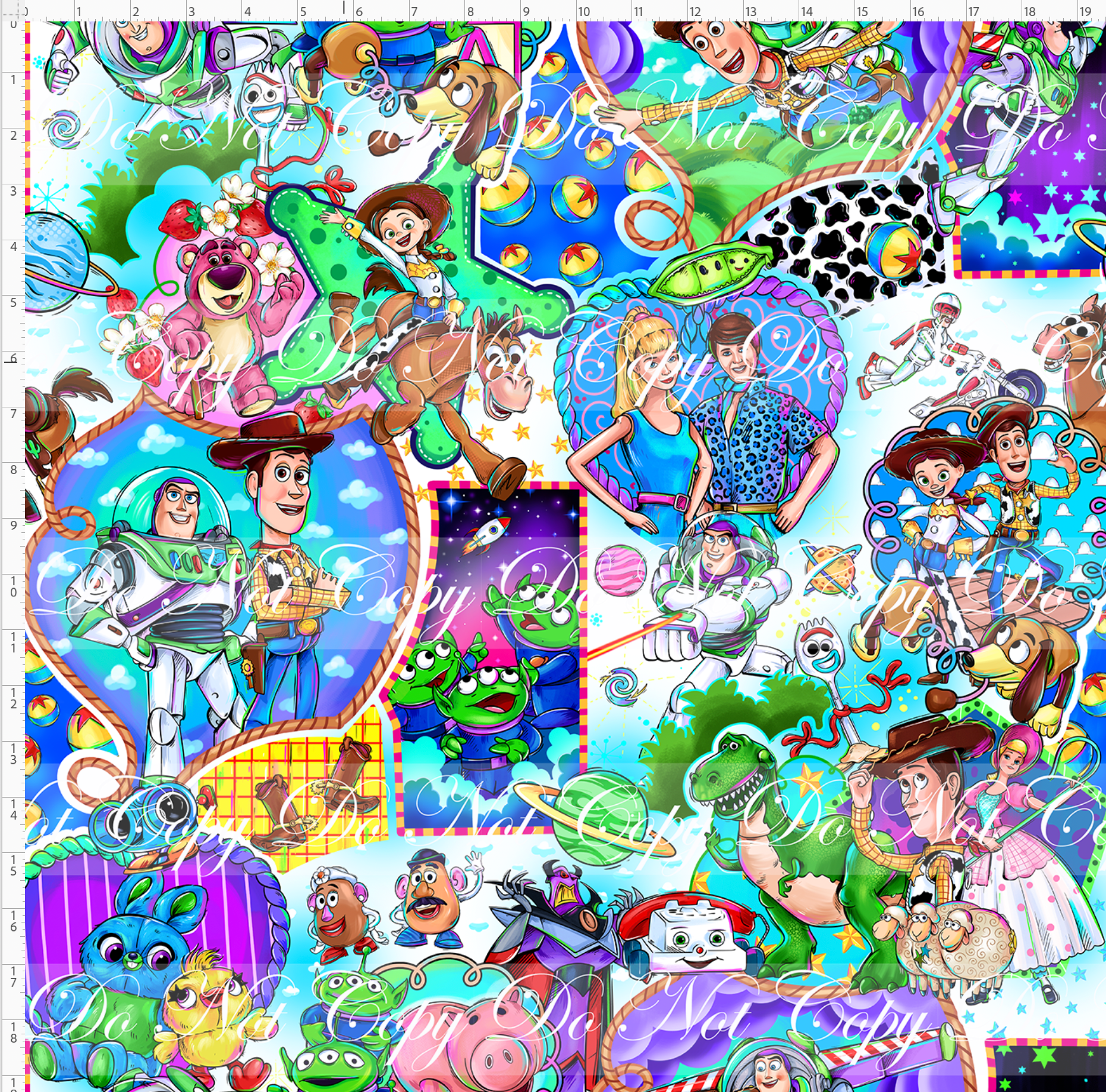 Kid/child panels measure 19" x 34". The image area typically ranges from 7" x 7" to 8" x 8", though some smaller design elements may extend beyond these dimensions. Please refer to the ruler shown on the design to ensure it fits your project needs.